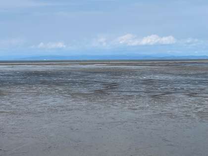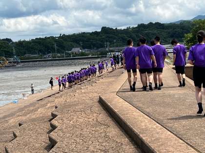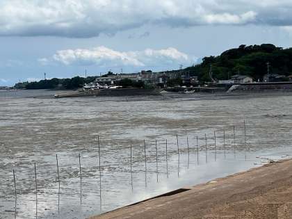 有明海で干潟体験をします。更衣を済ませて、移動中です。天気は良好です!!