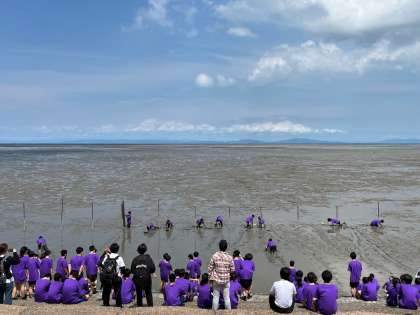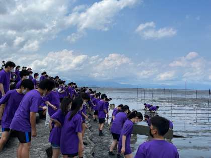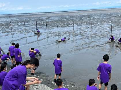 各クラス選抜メンバーによる「潟スキー競争」が始まりました。会場は、応援の声で、とてもにぎわっています。天気にもめぐまれ、みんなが笑顔で楽しんでいます。がんばれ、がんばれー!