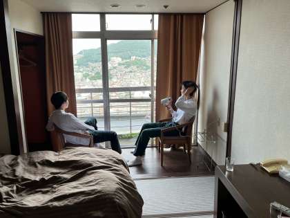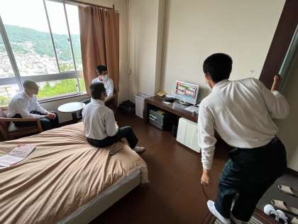 朝起きて、洗顔・更衣[制服]など、朝の身支度(みじたく)を終えた子どもたちは、朝食までの時間に、部屋の整理(???)をしたり、荷物まとめや友達との会話をしたりして過ごしています。写真の空模様は、朝7時00分のものです。とても爽やかな朝を迎えていますよ。