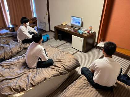 起床→更衣[制服]→部屋整理などです。朝食は、昨晩の夕食会場(ダイヤモンドホール)で、7時40分からスタートです。その際に、お世話になったホテルの方々への挨拶などもありますので、退館式もおこなう予定です。