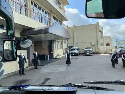 ホテル「にっしょうかん」を出ました。[予定通り 9時00分出発]