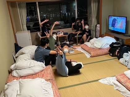 自由時間の様子です。夕食・入浴を終え、子どもたちは就寝準備も(ちょっとだけ)しながら、自由時間を過ごしていました。