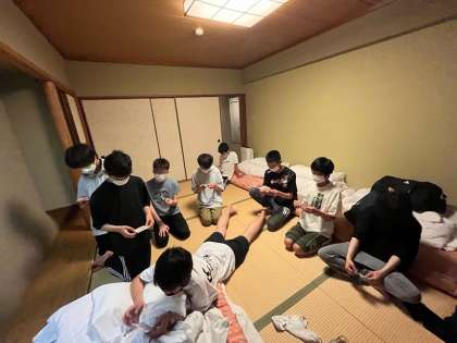 すごく楽しそうな場面ばかりでした。ホテル内でも、たくさんの思い出ができたでしょうね。(上の写真では、見事なハート形ができています。下の写真は、「ビンゴ大会」をしているんですかね???)