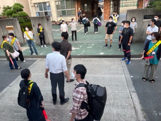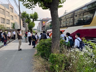 子どもたちは、新大阪駅からバスに乗り、学校に戻ってきました。これから、体育館で「帰校式」をおこないます。終了後、下校します。