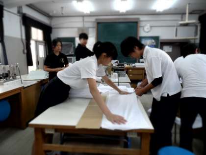 放課後、体育委員が足首とロープを結ぶ日本てぬぐいを切りました。