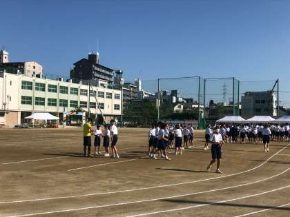 招集、誘導、決勝審判など、生徒たちが係の仕事を受け持ちます。それぞれのリボンを体操服につけて、責任を持って仕事をします。