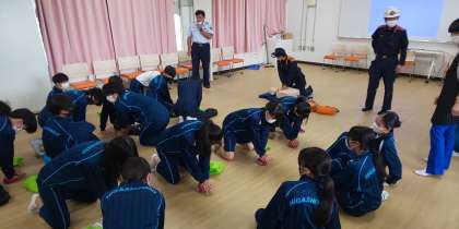 土曜授業として、防災の取り組みをしました。消防署・区役所・社会福祉協議会と連携して、体験活動や講話を聞いたりしました。