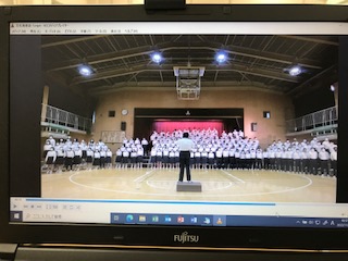 展示見学を終え、3年生は舞台発表の見学、1・2年生は教室で事前に撮影したリハーサル映像を観ています。