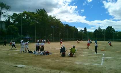 上は花乃井中学校と合同チームで参加した府大会の写真です。
