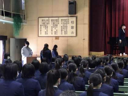 コロナ禍でこの3年の間はできなかった、卒業証書の全員への授与が今年はできるということで、所作を間違えないように練習中です。