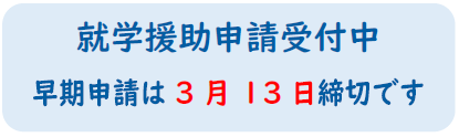 また、就学援助の最終受付期限は6月30日までですが、早期申請をすることで審査結果が早く通知されますので、
