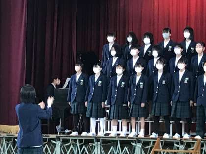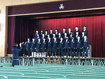 来週の合唱コンクールに向けて、今日は舞台での練習です。だいぶ声も出るようになってきたかな? 本番が楽しみですね。