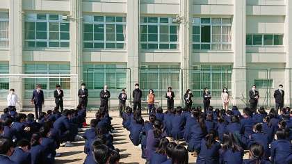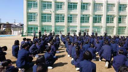 今年から東淀中学校に赴任してきた先生方の紹介と東淀中学校を出られた先生方のお知らせをした後で、新学年の先生方の発表がありました。