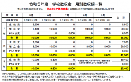 ⇒令和5年度 学校徴収金 月別徴収額一覧