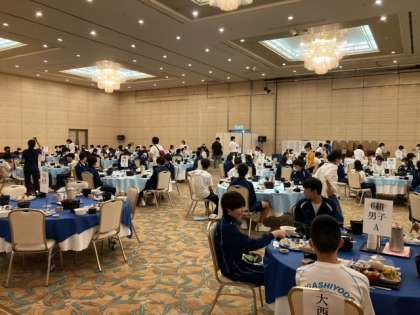 18じ40ふん、食堂へ移動開始 入館式をして、食事をとります。