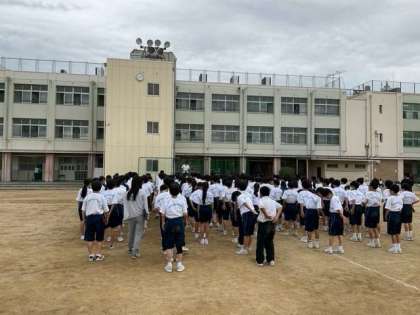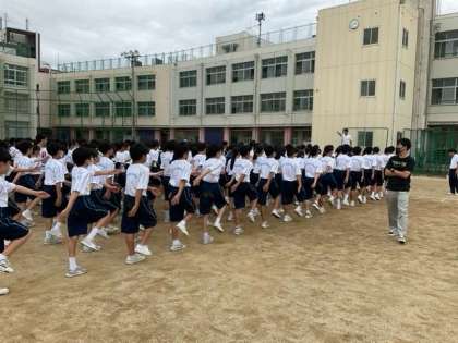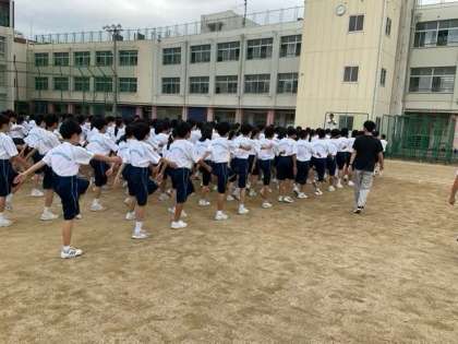 1年生は行進の説明とその場での足踏みで練習をしました。