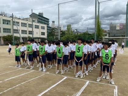 本日、体育大会本番のコース決定権をかけたムカデ競走エキシビジョンが行われました。