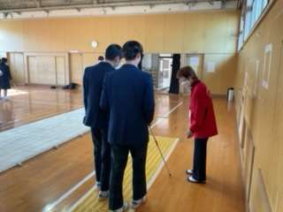 車椅子体験とともに隣の武道場でアイマスク体験を行いました。