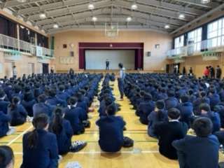 本日で2学期も終了です。 生徒指導主事の先生より、これまでを振り返り、今後に向けての話しをしています。