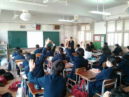 国語科 山村先生、数学科 野田先生の研究授業が行われました。見学に来られた指導教官や先生方に緊張した感じの1年生と普段通り?!の活気で和気あいあいと挙手している2年生の対照的な姿が印象に残りました。