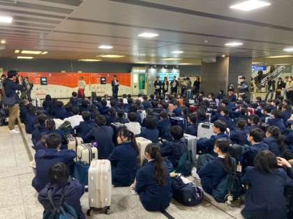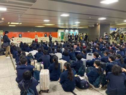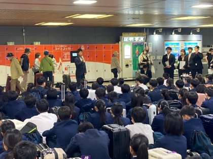 生徒あいさつ、諸注意など行いました。時間に余裕を持って行動できています。