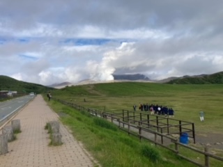 外輪山、火口丘、中岳噴煙、自然の偉大さを感じます。少し涼しいです。