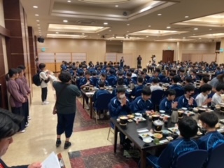 朝食が始まりました。天候は曇りです。皆、元気にいただきますをしました。
