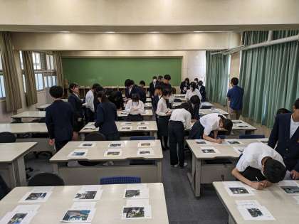 修学旅行で班で撮影した写真からおもしろ部門、ベストスマイル部門、ベストフレンド部門、テクニカル部門にエントリーし、みんなで投票して優秀作品を選びます!