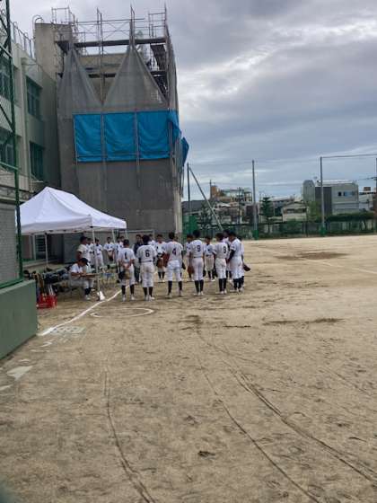 ?台風の影響を受けましたが、保護者、三年生の応援をうけて、公式戦一回戦を勝利しました。