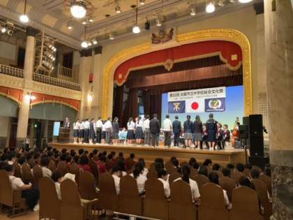 中之島の大阪市中央公会堂で行われました。開会式では囲碁将棋部門の代表として、本校生徒が表彰を舞台でしていただきました。