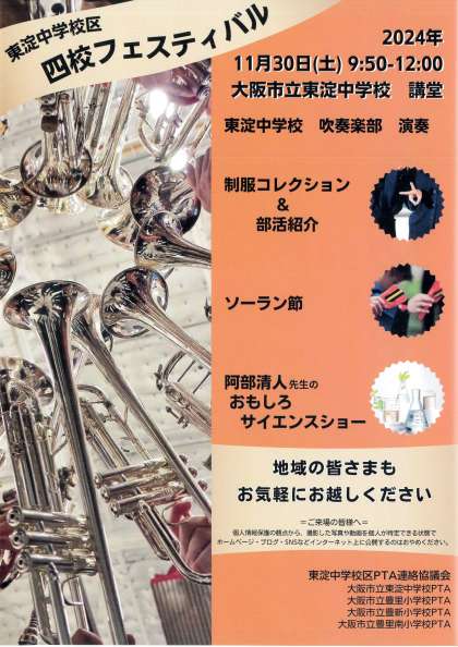 【再々掲載】東淀中学校区 四校フェスティバル開催について