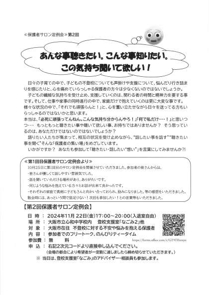 第2回 保護者サロン定例会案内