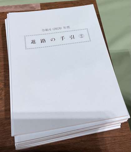 三年生の保護者の皆様には、冊子「進路の手引き」をお渡ししております。