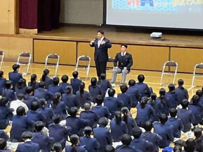本日、6時間目に私立興國高等学校の先生と生徒会長に来てもらい、