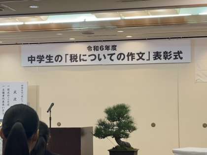 三年生の夏休みの課題で取組んだ「税についての作文」の表彰式がありました。本校からは三人の生徒が入賞しました。