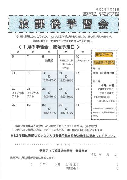 放課後学習会 1月の案内