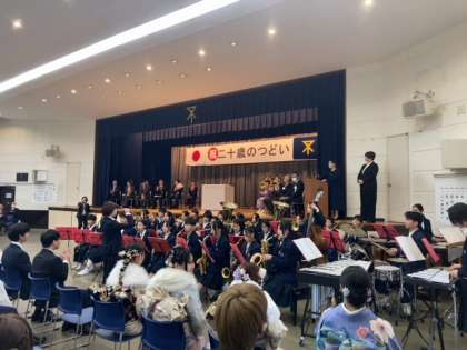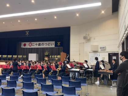 ?本校吹奏楽部がオープニングをさせていただきました。朝早くから音出し、会場でのリハーサルをしました。