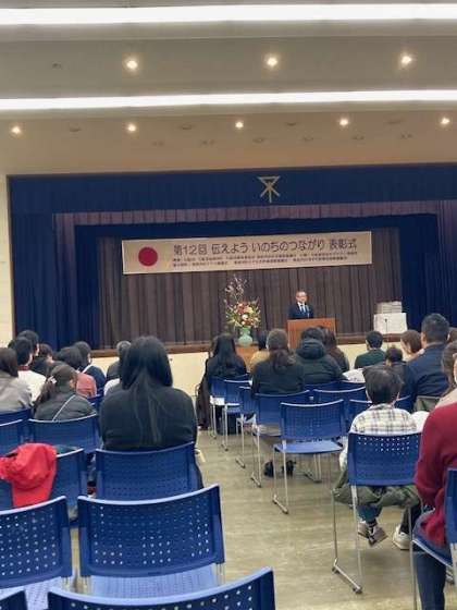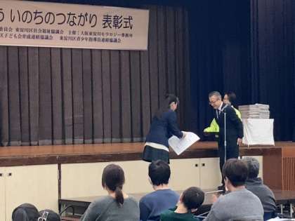 東淀川区役所3階・東淀川区民ホールで行われた表彰式に参加しました。東淀川区の小中学校から4,000を越える応募があったそうです。本校からも入選した生徒がいて、表彰を受けました。