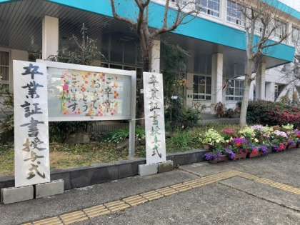落ち着いた式でした。卒業生の優しい気持ちに触れることができた卒業式でした。相川七瀬さん作詞、押尾コータローさん作曲の校歌を持っておられます。