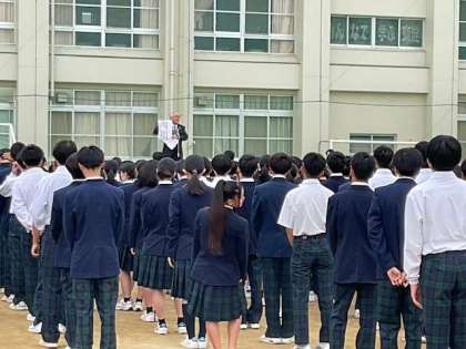 空は重たい雲におおわれていますが、皆さんは元気良く参加