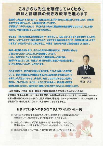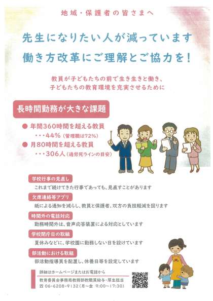 PDF ☞ 教員の働き方改革に関するチラシ(市長メッセージ)