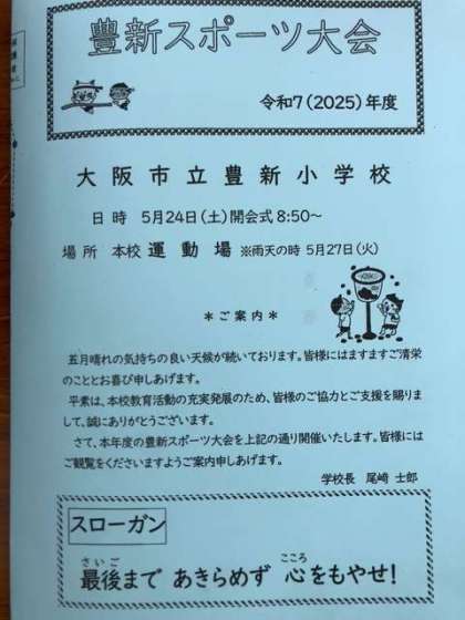 豊新小学校の豊新スポーツ大会に参加させていただきました。児童の笑顔に出会い、地域・保護者の方にもご挨拶できました。残念ながら10時過ぎに雨天の為、中止・延期となりました。