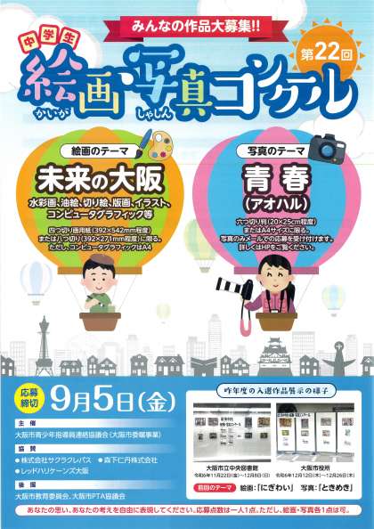 今年度は、絵画「未来の大阪」、写真「青春(アオハル)」