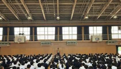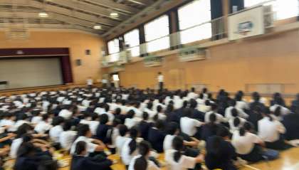 体育館に集まり、3年生最後の大会や最後の発表会に向けて