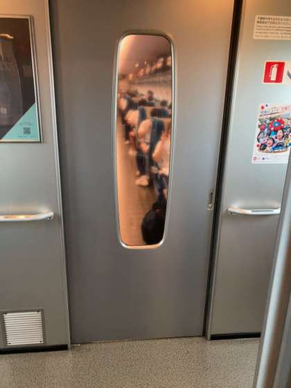 ドア越しで、申し訳ないです。ピースをしてくれてる手が僅かに見えるでしょうか。笑顔をたくさん載せたいのですが、悪用されては困りますので・・・