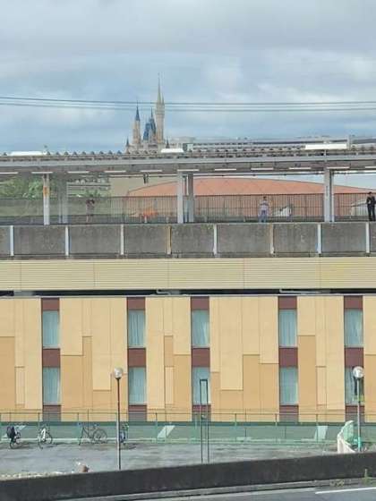 ?シンデレラ城、雲に刺さった東京スカイツリー
