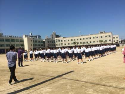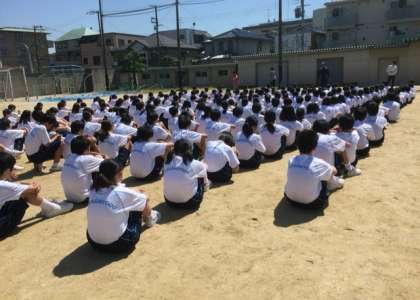 今日の5.6時間目で1年生は一泊移住に向けて集団訓練を行いました。