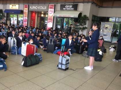 今日より2泊3日の行程で3年生が広島方面に修学旅行です。写真は出発式の様子です。