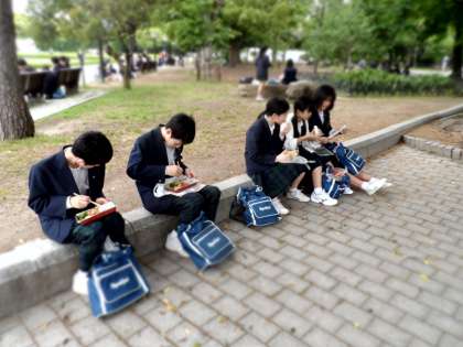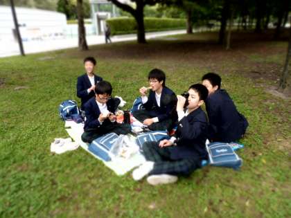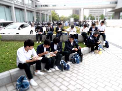 平和記念公園で昼食をとっています。