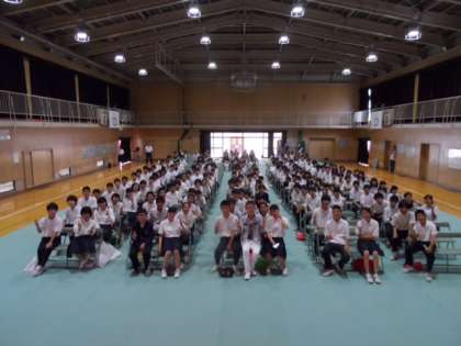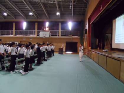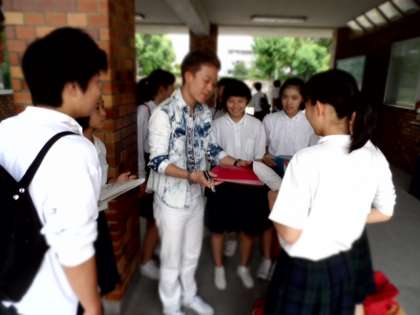 これを作った李翔雲さんがこの日、東淀中学校に来てくださいました。